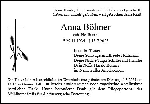 Lesen Sie hier die Anzeigen und Trauerpost!