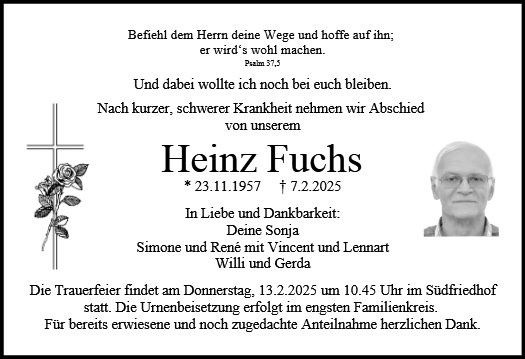 wir wünschen Ihnen von Herzen viel Kraft, dass Sie Menschen um sich haben, die Ihnen in dieser schweren Zeit beistehen und Halt geben. Zusätzlich können Sie auf dieser Gedenkseite Erinnerungen teilen und so das Andenken gemeinsam wachhalten.
