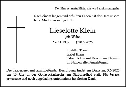 Lieselotte Klein geb. Weber