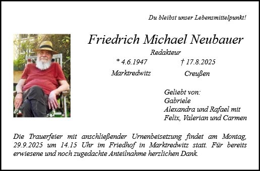 wir wünschen Ihnen für die kommende Zeit viel Kraft und dass es Ihnen gelingt, dankbar auf die positiven Erinnerungen zurückzublicken. Diese Gedenkseite möge Ihnen dabei helfen, Ihre Trauer zu teilen und das Andenken gemeinsam wachzuhalten.