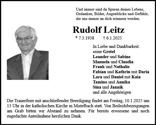 in diesen Tagen fühlen wir mit Ihnen und wünschen Ihnen von Herzen, dass Sie aus den glücklichen Erinnerungen Kraft schöpfen, um positiv in die Zukunft zu gehen. Diese Gedenkseite möge Ihnen dabei helfen, Ihre Trauer zu teilen und das Andenken gemeinsam wachzuhalten.