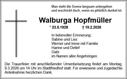 Lesen Sie hier die Anzeigen und Trauerpost!